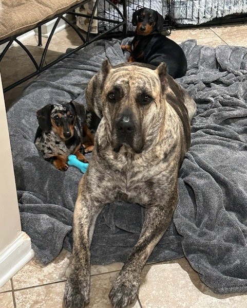 - Dana has a Presa Canario named Nadia and two mini dachshunds, Jada and Darci